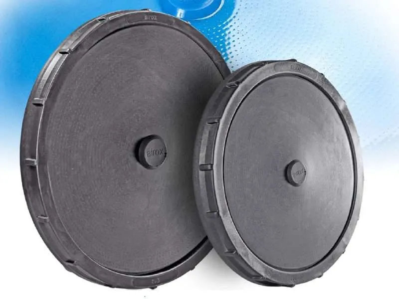 Diffusori circolari con membrana in EPDM o in silicone con microfori di precisione. I microfori agiscono come una valvola, dilatandosi per fare uscire l’aria e richiudendosi impedendo all’acqua di entrare una volta interrotto il flusso. Temperatura operativa 0÷100°C.