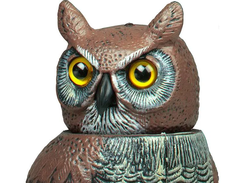 Sagoma di un gufo con testa rotante per allontanare i volatili